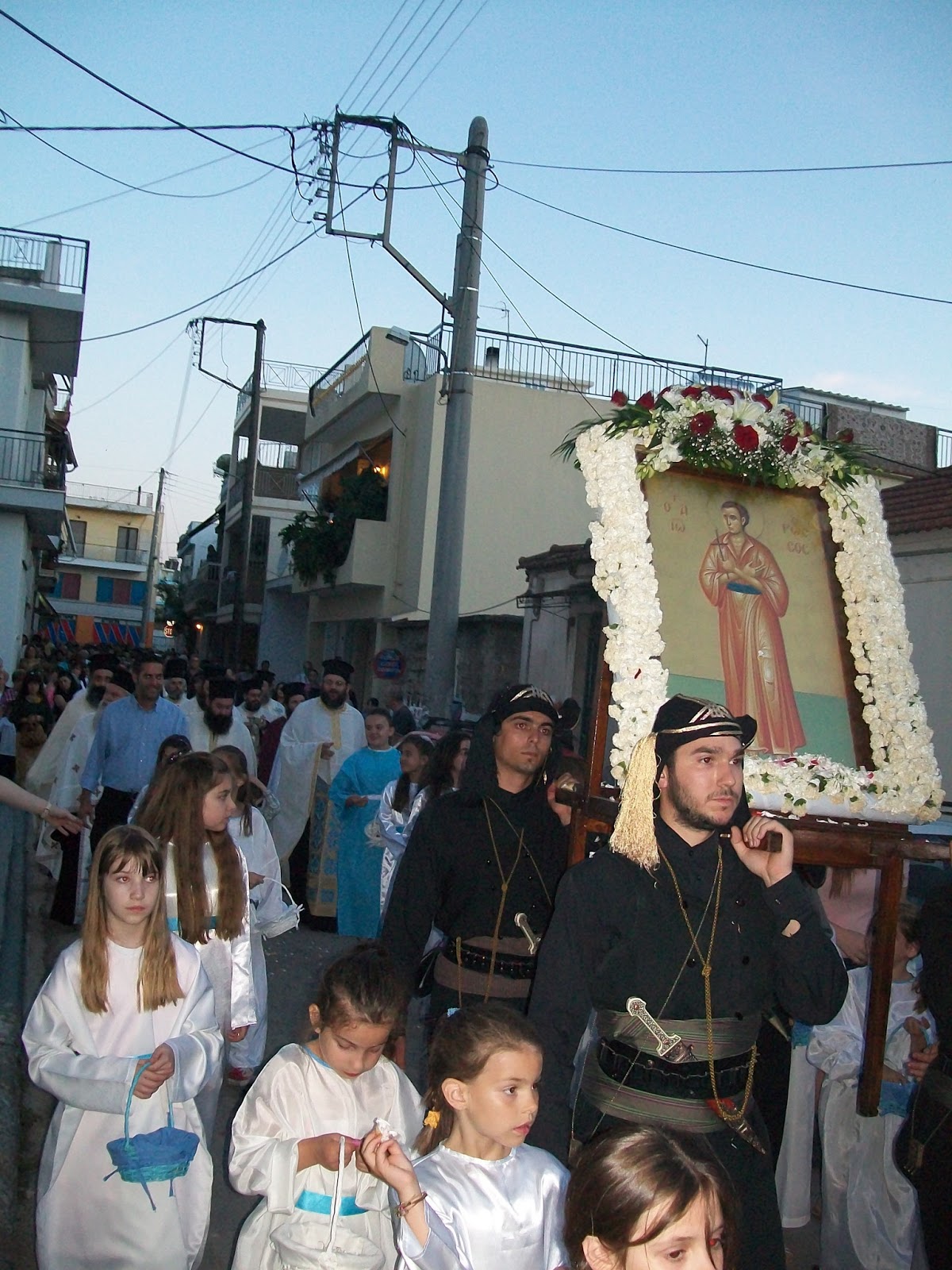 Στη συνέχεια έγινε λιτάνευση της ιεράς εικόνος στην Ενορία δια των οδών: