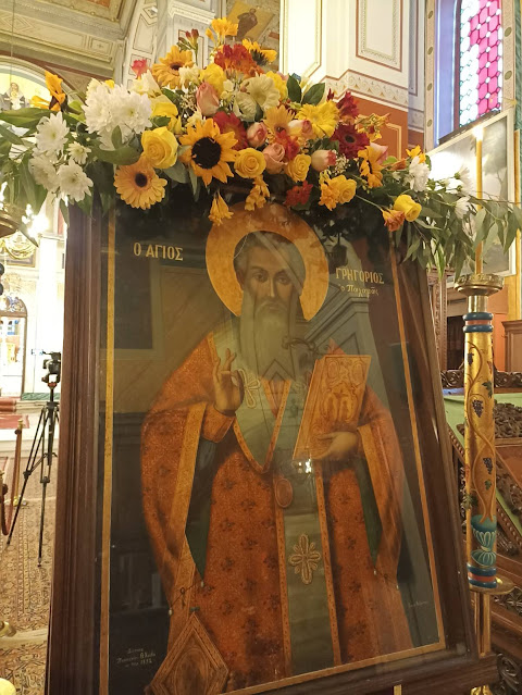 Σέ κλῖμα ἱερᾶς κατανύξεως ἑορτάσθη ἡ ἱερά καί πανσεβάσμιος μνήμη τοῦ ἐν ἁγίοις πατρός ἡμῶν Γρηγορίου, Ἀρχιεπισκόπου Θεσσαλονίκης τοῦ Παλαμᾶ, ὁ ὁποῖος ἀνεδείχθη ὑπέρμαχος τῆς Ὀρθοδόξου πίστεως καί θεολογίας καί μέ τό φωτισμό τοῦ Ἁγίου Πνεύματος, ἀντιμετώπισε τόν Kαλαβρό μοναχό Βαρλαάμ, ὁ ὁποῖος ἐξέφρασε τόν Ὀρθολογισμόν τῆς Δύσεως. Ὑπερασπίστηκε ὁ Ἃγιος τούς ἱερῶς Ἡσυχάζοντας, ἒναντι τῶν κακοδοξιῶν τοῦ Βαρλαάμ, γιά τόν ὁποῖο ἡ θεοπτία μέσῳ τῆς νοερᾶς προσευχῆς καί τῆς νήψεως ἦτο ἀκατανόητος, Τήν διδασκαλία τοῦ Ἁγίου Γρηγορίου τοῦ Παλαμᾶ, ἡ Ὀρθόδοξος Ἐκκλησία κατοχύρωσε μέσα ἀπό ἁγίας Συνόδους. Ὁ μέγας αὐτός Διδάσκαλος τῆς Ἐκκλησίας ἀπετέλεσε καί ἀποτελεῖ ἒλεγχον τῆς δυτικῆς Θεολογίας καί σκέψεως, θά ἐλέγαμε δέ τό ὃτι εἶναι «κόκκινο πανί» γιά τήν Δύση, ἓως τῆς σήμερον...