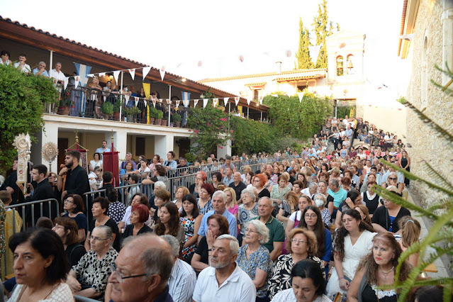 Μετά τά ἐγκώμια ἠκολούθησε, ὃπως κάθε χρόνο, ἡ Ἱερά Λιτανεία τῆς Εἰκόνος τῆς Παναγίας στήν ἐσωτερική καί ἐξωτερική αὐλή τῆς Μονῆς, μέ τά πλήθη τῶν πιστῶν νά ραίνουν μέ ἂνθη καί μῦρα, ἀλλά καί μέ δάκρυα τήν Παναγία Μητέρα τοῦ Κυρίου μας καί Μητέρα ὃλου τοῦ κόσμου.